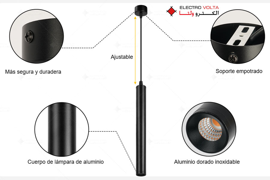 چراغ آویز آراز با فرم استوانه‌ای باریک و رنگ بدنه مشکی، به‌راحتی با انواع دکوراسیون مدرن هماهنگ می‌شود. زاویه تابش 35 درجه، نور را به‌صورت هدفمند روی سطح موردنظر متمرکز می‌کند و برای ایجاد جلوه‌های نوری خاص بسیار مناسب است.