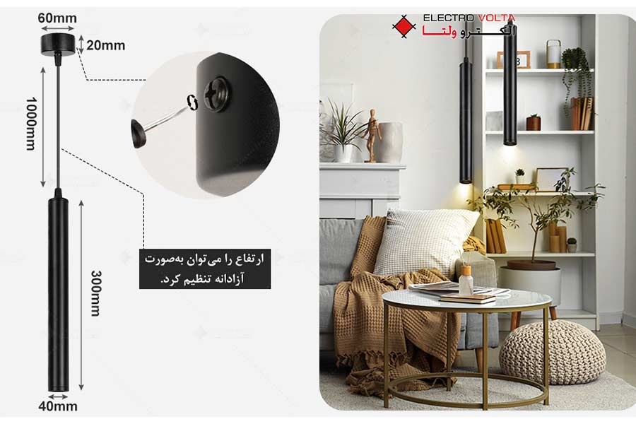 نحوه نصب چراغ استوانه‌ای آویز آراز 7 وات